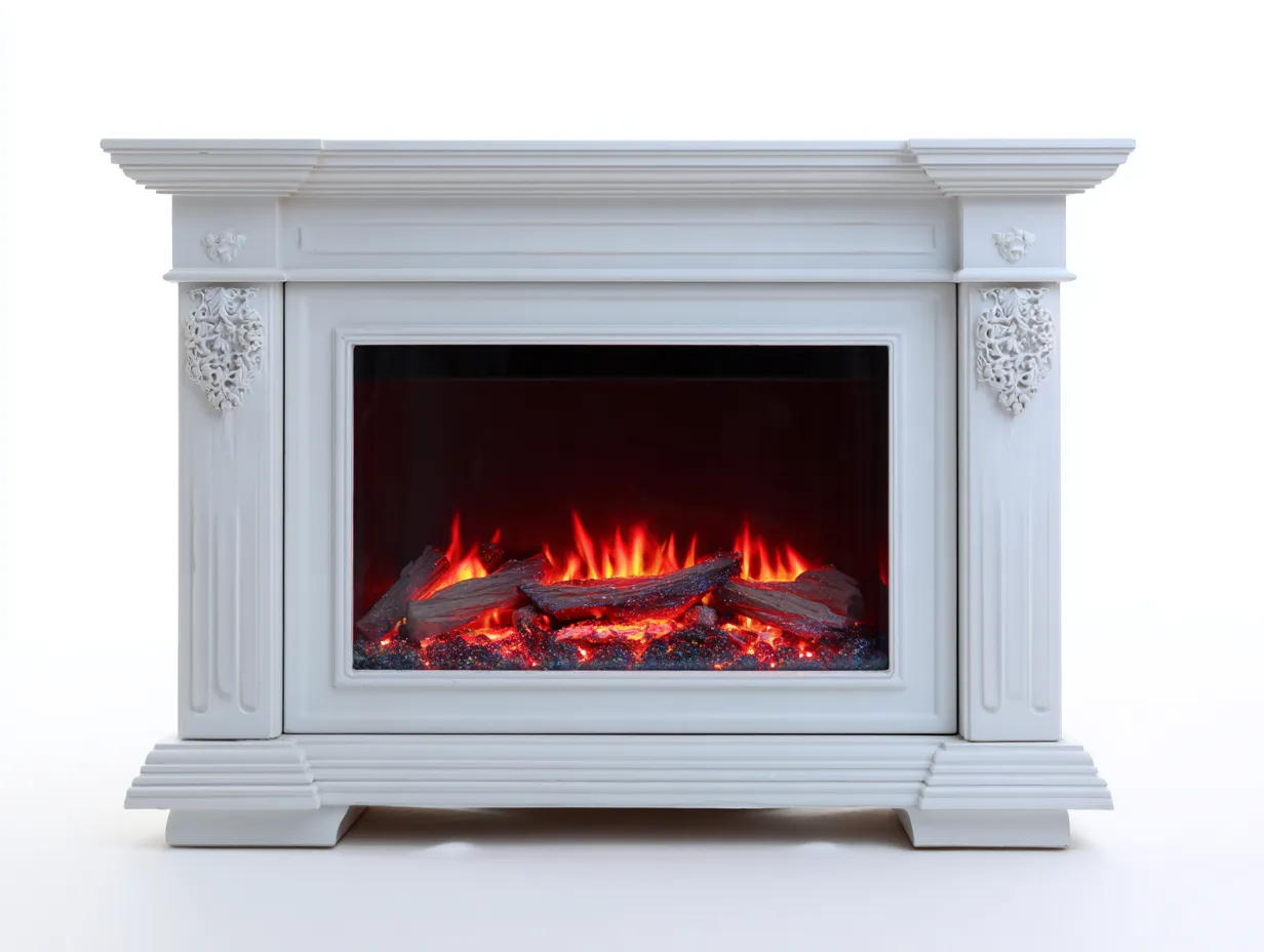 Cheminée électrique avec manteau décoratif 122x34x104 cm - blanc - pour salon - effet flamme - style classique