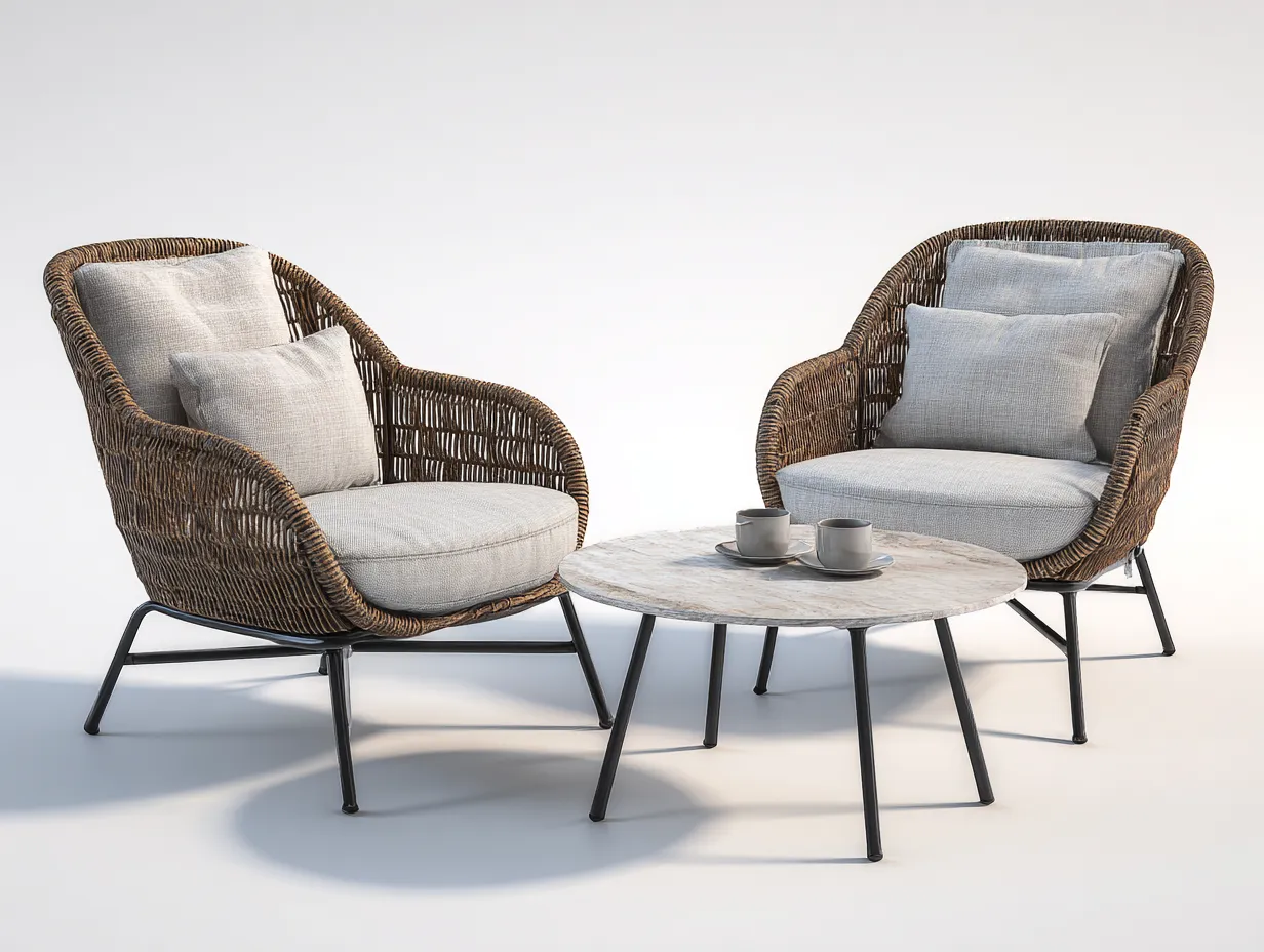 Salon de jardin pour terrasse en rotin synthétique métal 120x60x75 cm - marron clair - gris - adapté à l'extérieur - style contemporain